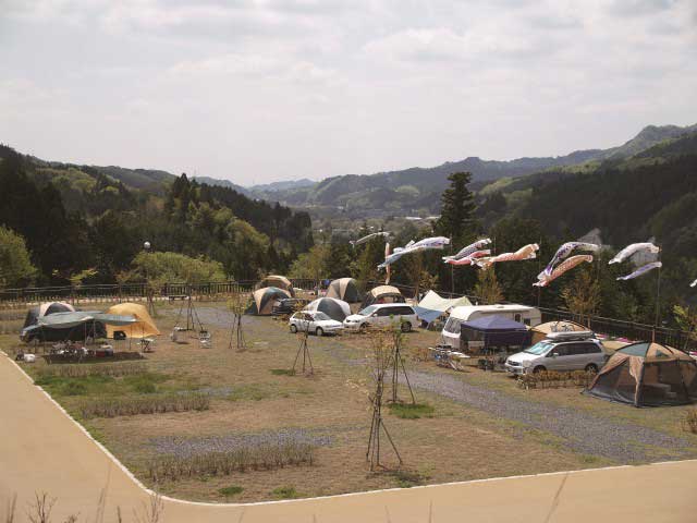 フリーサイトと区画型サイトに分かれており、設備は炊事場とトイレだけのシンプルなキャンプ場。管理棟が温泉施設になっていて、区画型サイトの宿泊利用者には入浴券が付く。