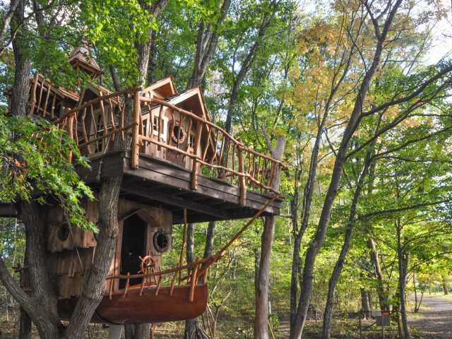 浅間山を望むロケーションは抜群。広大な敷地には直火が利用できる林間サイトや気軽に楽しめるコテージ、ツリーハウスなど多彩な宿泊施設がそろう。レンタルや売店の品ぞろえも充実しているので手ぶらでも安心だ。
