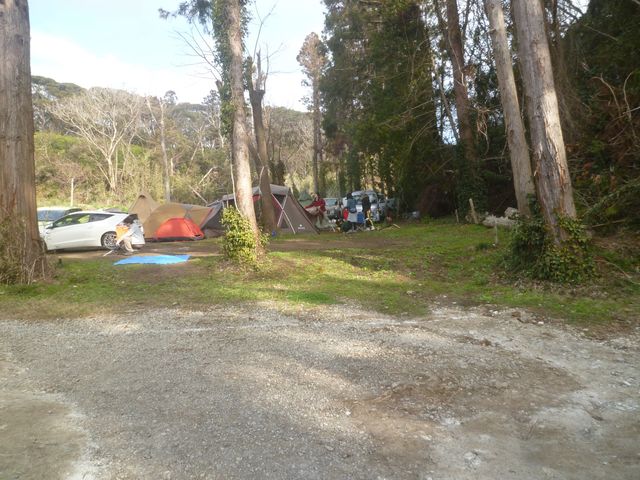 千倉市街を一望できる高台にサイトがあり、気持ちよく過ごせるキャンプ場。裏手にはミカンの木がたくさん。また、節度さえわきまえれば、薪を無料で使うことができる。