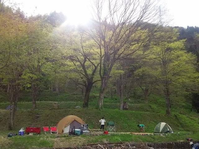 - サイト使用料= 1組用サイト(テント2張りまで)2500円、1人用小サイト1500円