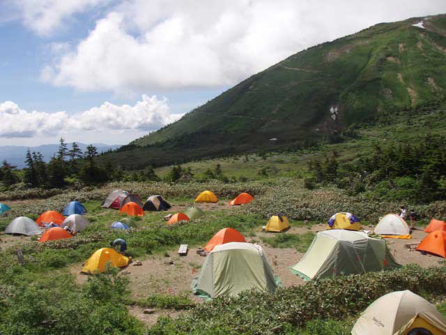 白山山頂近くにあるキャンプ場。高地にあるので寒さ対策など十分な装備で利用しよう。予約時に申し込めば南竜山荘での食事も可能。アクセスは、マイカー規制もあるので市ノ瀬駐車場からバスと徒歩で現地へ。