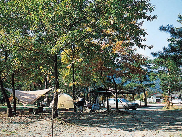 自然林の中に広がるフリーサイトのみのキャンプ場。施設はいたってシンプルでデイキャンプ利用も多い。すぐそばに流れる鹿留川は大人の膝ほどの水位で子供でも川遊びが楽しめる。利用の際は必ず予約をすること。