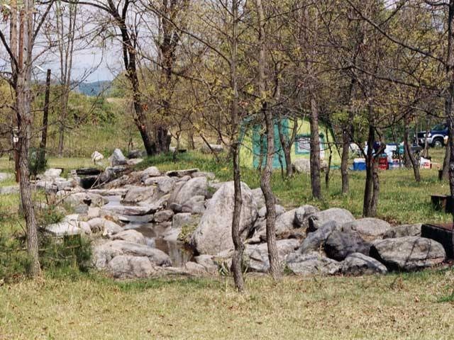 こぢんまりとした場内で施設もシンプルだが、サイトには適度に木立があり、居心地はよい。すぐそばには清流尾白川が流れていて、せせらぎを聞きながらのんびりと過ごせる。