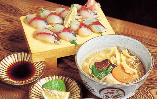 山間の傾斜地を整地し木立の中を段々状にサイトがつくられているため、プライバシーが守られている。むじなの像の下から湧き出す名水でキャンプ食を作ってみよう。