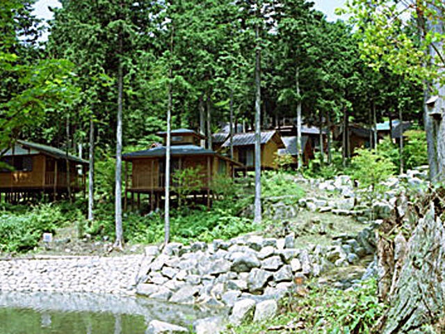 南アルプス最南端に位置し、豊かな自然を満喫できるキャンプ場。木々に囲まれたふれあいゾーン、竜神の滝がある竜神ゾーン、川遊びに最適な国設ゾーンの3エリアからなり、大小さまざまなバンガローが建ち並ぶ。