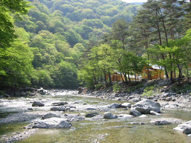 付知川の上流部に位置し、場内では川遊びや釣りが楽しめる。岩できれいに区画されたサイトは全区画AC電源付きで広さも十分。宿泊施設のプチキャビンは各棟に専用の屋根付きBBQスペースがある。