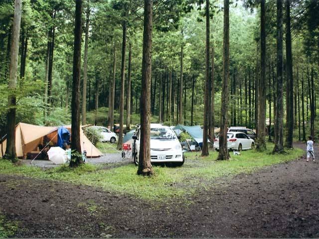 朝霧高原のメインルートからは離れているので、場内はとても静か。木々に囲まれたサイトは1区画150平方メートルという広いスペースを確保し、ゆったりとキャンプを楽しめる。