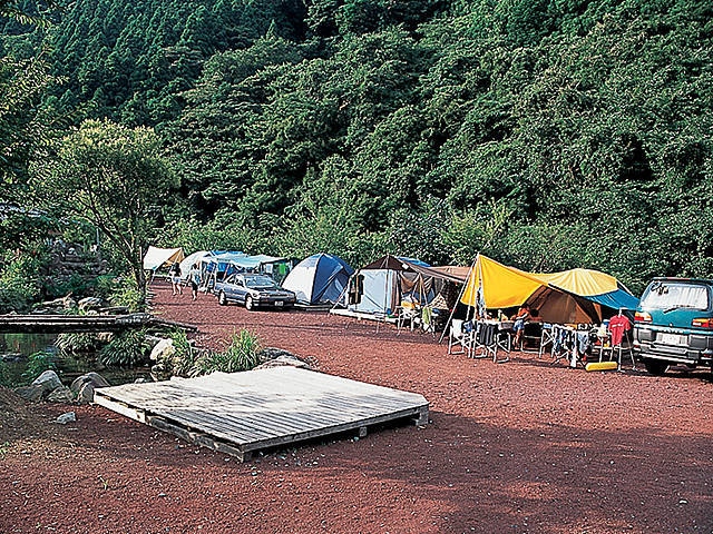 渓流沿いの自然豊かなキャンプ場で、スノコサイトと林間サイトがある第1キャンプ場と、その上流にあるサイトが広めの第2キャンプ場がある。24時間利用可能な温泉露天風呂(第1キャンプ場)があるのが一番の魅力。