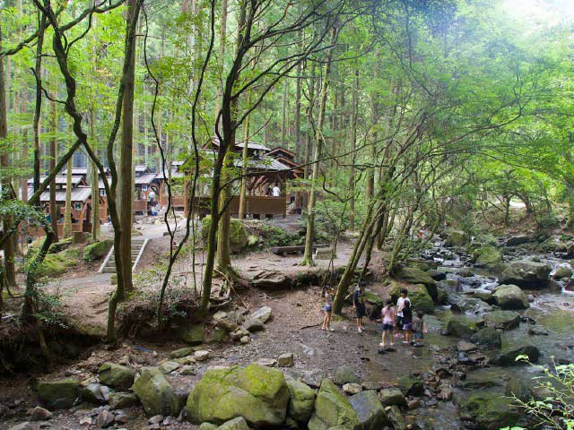 緑に包まれた美しい渓谷にテント村、バンガロー村、BBQ場などが整備されている。夏は川遊び、秋は紅葉のスポットとしても人気で、自然の中でキャンプやBBQを楽しむのに絶好のフィールドだ。