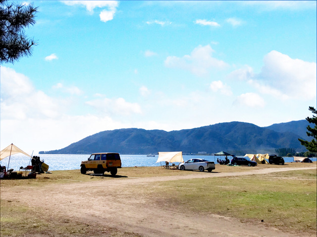 緑の松林に包まれた白い砂浜が1kmに渡って広がる水泳場を前にした、130サイト収容可能なオートキャンプ場。琵琶湖に面した砂浜のサイトや松林の中のサイトがあり、隣接の旅館「白浜荘」のラジウム風呂も利用できる。