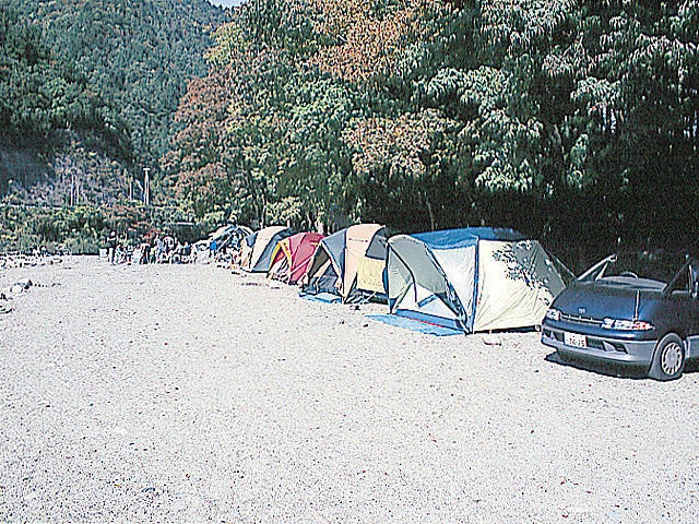 砂地部分が多い河原に広がるサイトのほか、バンガローも揃う。施設はシンプルだが、思いきり川遊びを満喫できる。紅葉の時期にサイトから眺める景色も見もの。