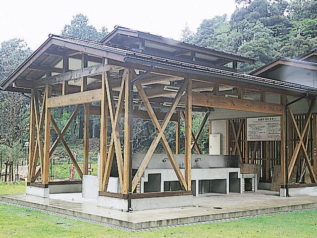 天女が舞い降りたという伝説が残る磯砂山(いさなごさん)のふもとにある交流施設。静かな山里にあり、すぐそばを鱒留川が流れるロケーション。ウッドデッキサイトにはAC電源、水道・流し台が設置されており、設備も十分。