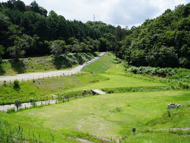 春には桜が咲き、ワラビ採りや栗拾いも楽しめる自然豊かな公園。壁画アートのサイト、池を望むデッキサイト、ソロキャン向けの林間エリア、ドッグランがある芝生エリアなどさまざまなサイトがある。