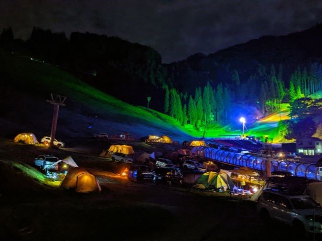 - 管理棟、炊事棟、簡易水洗トイレ、風呂(若杉高原温泉)、温水シャワー(平日)、売店、自動販売機、夏(グラス)スキー場、夜行リフト、ウォーターマウンテン、マットジャンプほか