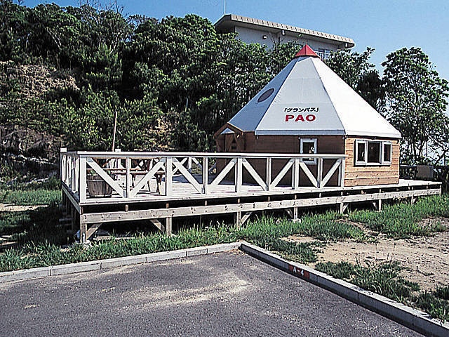 海を見下ろす高台に区画型のオートサイトが整備され、AC電源が付いたタイプもある。グランパス敷地内に入浴施設、水着で入る温泉プール(夏期のみ)もあり、温泉入浴も楽しめる。
