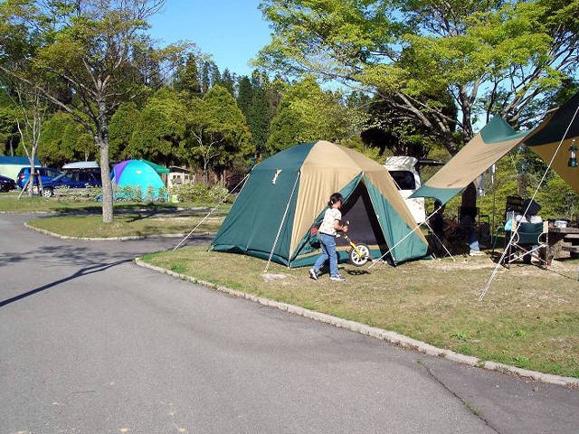 - オート21区画(AC電源、テーブル・ベンチ付き)、サイトは芝生。キャンピングカー4区画(AC電源、テーブル・ベンチ付き)、サイトは芝生。テント専用20張り、サイトは草地・土