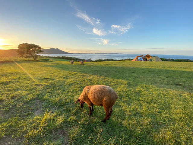 玄界灘を一望できる広大な草原にあるキャンプ場