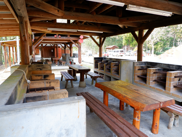 - 管理棟、炊事棟、水洗トイレ、温水シャワー、夜間照明、自動販売機ほか