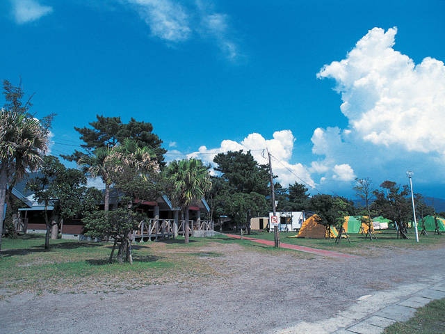 - 管理棟、炊事棟、休憩棟、水洗トイレ、シャワー室(温水シャワー)、自動販売機、夜間照明
