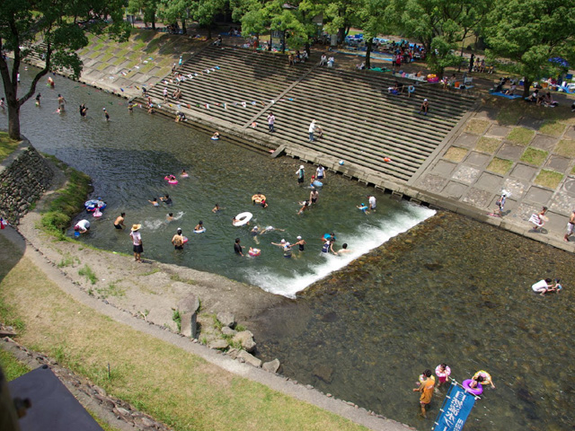 周囲は豊かな自然がいっぱいで、夏は流水プールもある。場内は小さなゴミひとつ見ないほど、よく手入れがされていて、快適に過ごせる。