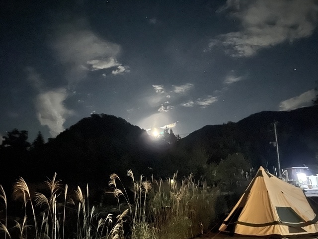 - テント、タープ、シュラフ、エアマット、電気敷き毛布、イス、テーブル、ランタン、コット、BBQコンロ、ダッチオーブン、薪割り台、延長コードほか