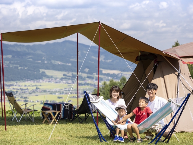 魚沼平野を一望できる、天然芝の広々サイトが魅力