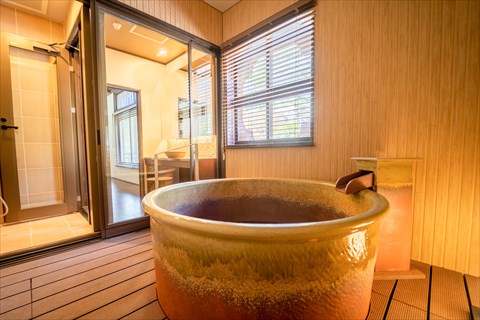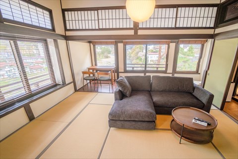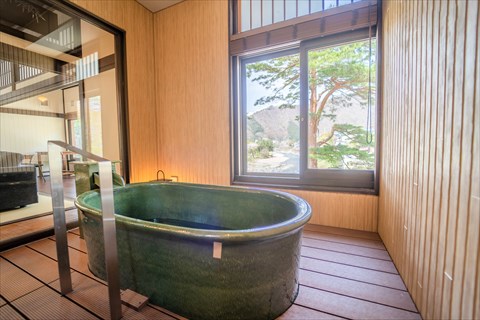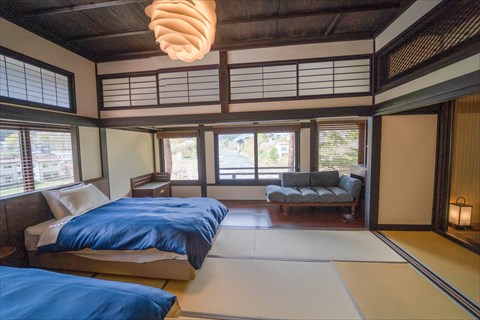 2023年に明治時代に建てられた旅館をフルリノベーションして誕生した、「源泉湯の宿 松乃井」の離れ別邸。全7室の客室は日本の伝統的で美しい建築意匠に洋の要素も取り入れ、和洋折衷のインテリアが映える新旧のアートのような空間。2間続きなど広い室内からは大きな窓越しに、利根川のせせらぎや谷川岳の景色を眺められ、癒しのひとときを過ごせる。陶器の浴槽を配した7室は1室のみが半露天風呂となり、すだれ越しに豊かな自然を楽しめる。6室にも内風呂が備わり、全室の湯船に天然温泉が注がれている。食事は「松乃井」のビュッフェを利用するか、持ち込みが可能なので部屋でいただくことも可能。好みの滞在スタイルで時間を過ごしたい人にぴったりだ。当館は「カジュアルインクルーシブ」として宿泊料金に客室冷蔵庫内の「アルコール・ソフトドリンク」が含まれており、群馬の地酒「水芭蕉」・「川場地ビール」・県内産の「梅ジュース」・「谷川岳美味しい水」等ご自由にお飲み頂けます。また。軽食やお菓子もご用意しており、軽食は人気の豚カツ屋さんの「カツサンド」、お菓子は海外ブランドの「ポテトチップス」がお好きな時に楽しめます。