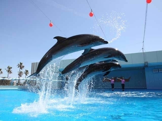 - レストラン・物販店・おもちゃ王国のパビリオン内は不可、総合レストラン2ヶ所あり、水族館エリアでイルカショーが見られる。おもちゃ王国体験パビリオンで遊べる