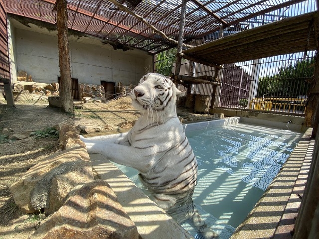 ホワイトタイガーやレッサーパンダなど約90種類の動物を飼育。自然が豊かな山の斜面を利用した動物園で、桜の時期はお花見も楽しめ、お弁当を持ち込んでピクニック気分を楽しめる。ライオン「チャーリー」くん(オス)はとてもヤンチャで遊び盛り。また、ホワイトタイガーの「サン」ちゃん(メス)はネコ科の動物には珍しく水浴びが大好きだ。園内ではニンジンやシカせんべいを購入して、ロバやヒツジ、シカ、ジャージー牛などにエサをあげることもできる。