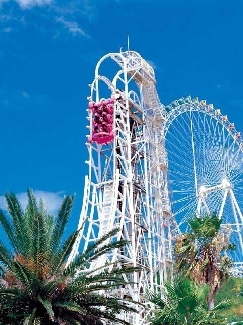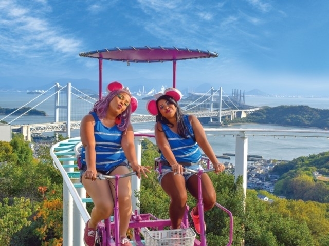 瀬戸内海の絶景を見下ろすことができる遊園地。海抜200mから垂直落下する「ターボドロップ」やSNSで世界最恐と噂の、高さ16mの「スカイサイクル」などスリル満点の乗り物がそろう。海抜170mのバンジージャンプも中国・四国地方ではここだけ。ステージでは、毎日開催するブラジリアンダンサーによるサンバショーやビンゴなどで1日存分に遊ぶことができる。さらに、夏は全長100mのスライダープールもオープン。