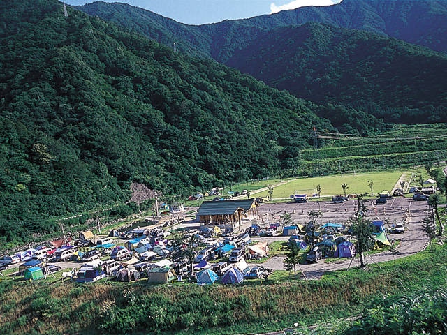 三国ダムの少し下流に位置するキャンプ場。整然と区画されたオートサイトのほかに、充実した設備で快適に過ごせるコテージがある。場内には子どもの遊具もあるので、ファミリーにも人気だ。
