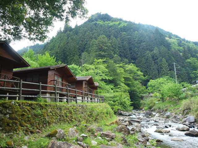 川遊びが楽しめる漆島川沿いにあり、サイトはオートサイトやテント専用サイト、ゆったりテントサイトの3タイプ。ほかにもバンガローや屋根付きの雨天テントサイトもあるので、雨が降っても安心して楽しめる。