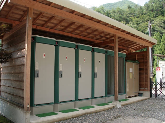 - 管理棟、炊事棟、水洗トイレ・温水シャワー棟、自動販売機
