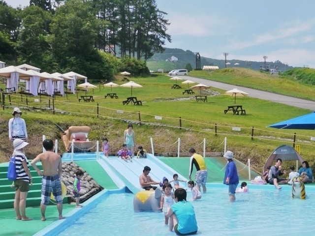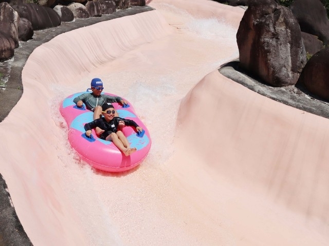 豊かな自然の地形を生かしたプールで、山の斜面をカーブしながら滑り降りるウォーターボブスレーや、浮き輪に乗って180mの激流を下るワイルドリバーなどエキサイティングなアトラクションが勢ぞろい。ちびっこプールや、ふわふわのバルーンスライダーもあり、小さな子どもも大満足!