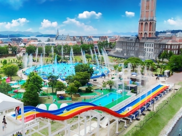 昼はガーデンプールで高さ約10mのスリル満点「メガスライダー」など、開放的なプールで大はしゃぎ!4月27日からオープンするウォーターガーデンは、楽しみながら、噴水ショーと絶景を眺めて、素敵なひとときを過ごすことができる。夜はプールを楽しみながら日本一のイルミネーションの中で夏の夜空を華やかに彩る大輪の花火が楽しめる。(開催日はHPで確認)