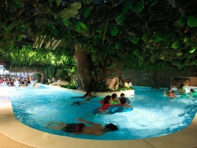 別府温泉 杉乃井ホテルに併設されている南国風のレジャープール。波が押し寄せるアクアビーチや流れるプールのミステリードーク、ウォータースライダーなど多彩なウォーターアミューズメントがそろっていて楽しめる。