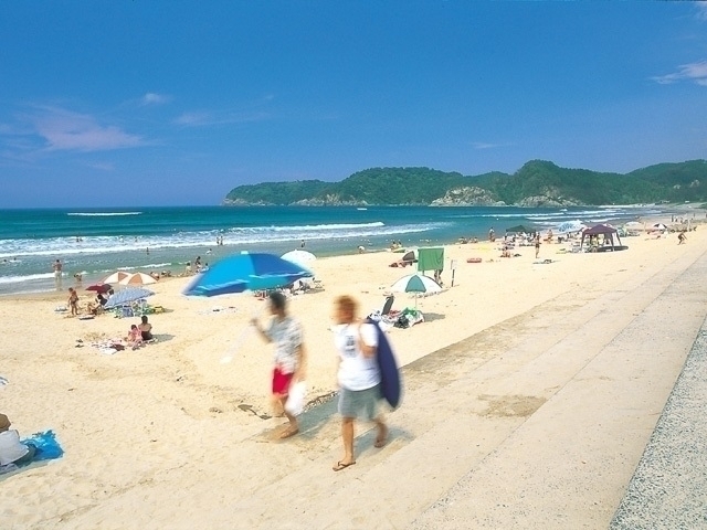 1894(明治27)年に開かれた海水浴場。白砂の浜が1.5kmにわたる。「日本百景」、「名勝・天然記念物」、「山陰海岸国立公園」に指定されるとともに、2008(平成20)年に「日本ジオパーク」認定、2010(平成22)年に「世界ジオパークネットワーク」加盟認定されるなど、学術的にも評価されている。
