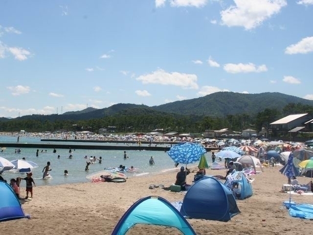 若狭湾国定公園内、城山と白浜の間にある全長約700m、浜幅20mの海水浴場。青く澄んだ海と美しい景色が自慢。近くには民宿が集中していて、泊まりがけで訪れるファミリーや若者に人気が高い。