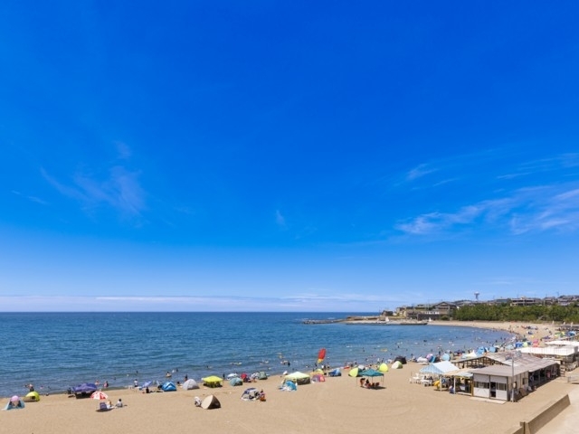 三国港に隣接し、遠浅で水がきれいで、夏には多くの海水浴客でにぎわう。家族連れにも人気だ。近くには温泉施設「東尋坊三国温泉ゆあぽ~と」もあり、夕日を見ながらゆったりと温泉を楽しめる。