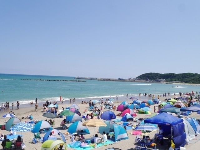 弓なりに弧を描く海岸線が魅力的な、茨城県内有数の規模を誇る海水浴場。シーズンになると大勢の家族連れなどでにぎわう。「国営ひたち海浜公園」が隣接しており、花と緑に囲まれた一大レジャースポットになっている。ひたち海浜公園ICから車で3kmというアクセスの良さもうれしい。