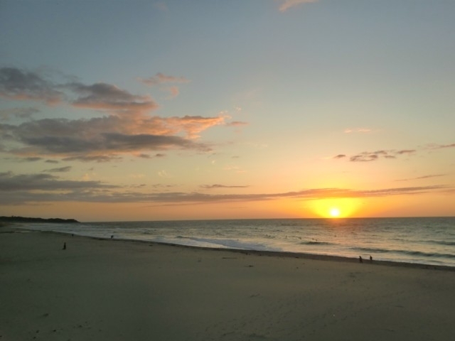 県立石見海浜公園内にある海水浴場。ウィンドサーファーたちでにぎわいを見せる。白砂が美しい遠浅の海は、ファミリーやグループにも好評だ。また、駐車場そばのトイレ・シャワー棟も利用しやすい。近くには、軽食のあるマリンハウスやシロイルカに会える「しまね海洋館アクアス」もある。
