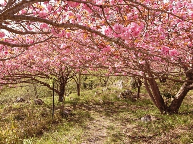 日本最大のカルスト台地秋吉台に位置し、オートキャンプ場やケビンなどの宿泊施設が揃っているレクリエーション施設「秋吉台家族旅行村」。その敷地内にあり、春に美しい桜を楽しめるのが「桜の園」。ソメイヨシノやヤエザクラ、ヤマザクラが次々と咲き、秋吉台の春を楽しむことができる。