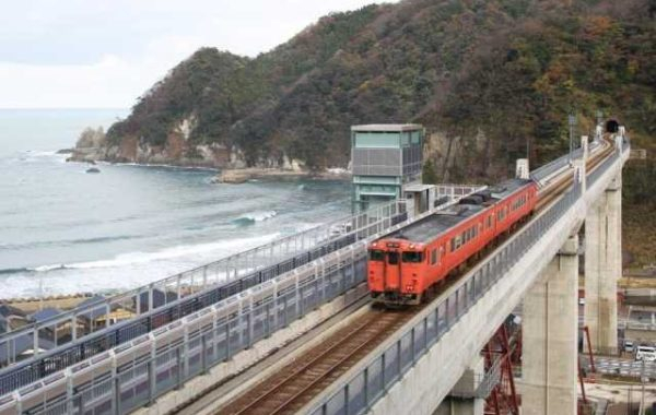 旧日中線跡地を利用した遊歩道(サイクリングロード)沿いの桜並木。喜多方駅前から松山町村松までの約3kmにわたりシダレザクラが連なり、見事な桜並木となっている。遊歩道の途中に当時運行していたSLの展示があり、シダレザクラが華やかさを添える。