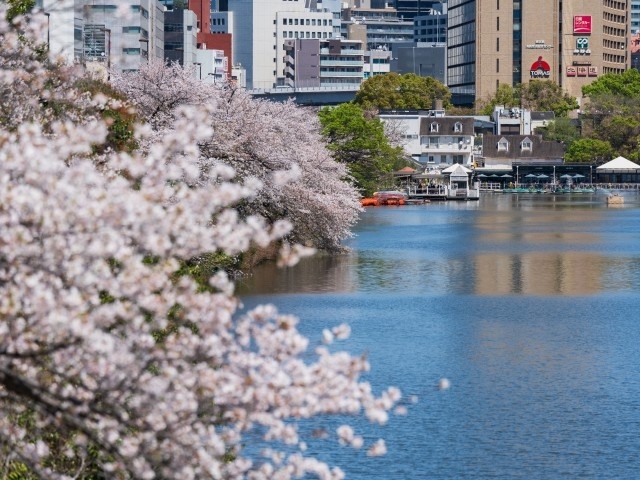 JR飯田橋駅から四ツ谷駅までの沿線に約2kmにわたって続く桜並木。シーズン中は総武線や中央線の車窓から見えるお濠の景色もピンク色に染まる。散策にぴったりの遊歩道はゆっくり歩けば1時間ほどのコース。近くにある法政大学前のヤマザクラも見どころのひとつだ。