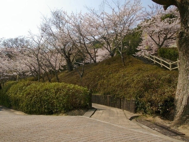 八幡山城跡などがある八幡山の麓にある緑豊かな公園。四季折々の自然を眺めながら、のんびり過ごすのに最適なスポットだ。春の桜の時期には、公園を彩る桜を眺めに多くの市民が訪れる。