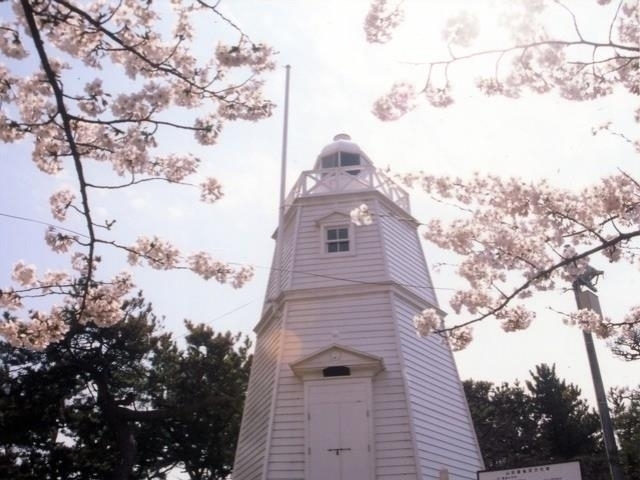 日本海に沈む夕陽が美しく、「日本の都市公園100選」に選定されている公園。園内には、日本最古級の木造六角灯台や方角石、往時活躍した千石船(1/2で再現)などがある。ソメイヨシノなど約400本の桜が咲き誇る桜の名所でもある。