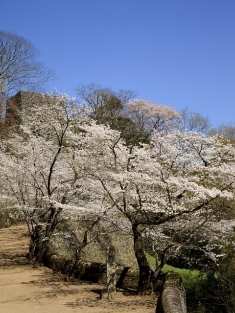 800年の歴史を持つ城の石垣を満開の桜が彩る