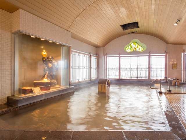 かつて佐渡の金を江戸に運んだ金街道にちなんで名付けられた純金小判風呂は、浴槽の底に純金の小判が敷き詰められた縁起の良い造り。展望露天風呂、貸切風呂もある。