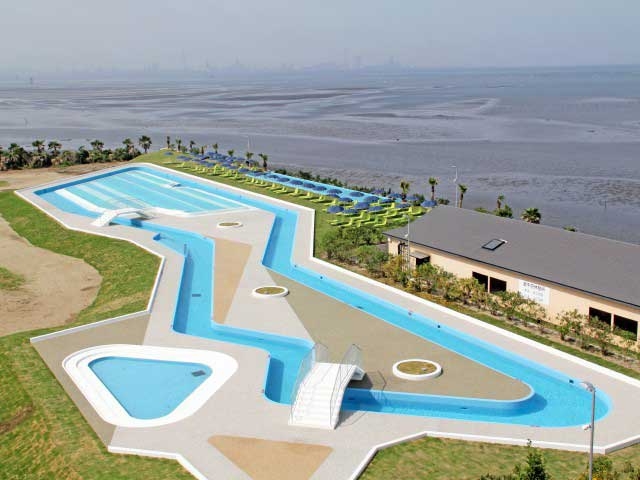 60種類以上もの風呂とプールを組み合わせた巨大リゾート施設を持つホテル。1階と3階の温泉フロアは、南国リゾートと和風の趣を取り入れた空間。屋外には景色抜群のプールと露天風呂がある。