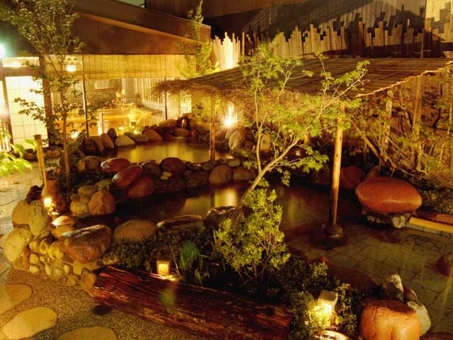 岩や木を使った大露天風呂「薬師の湯」や、ひばの木の香りがリラックス効果を促す「大ひば湯」など、さまざまな湯船が堪能できる。湯は湯冷めしにくい特長をもつ。